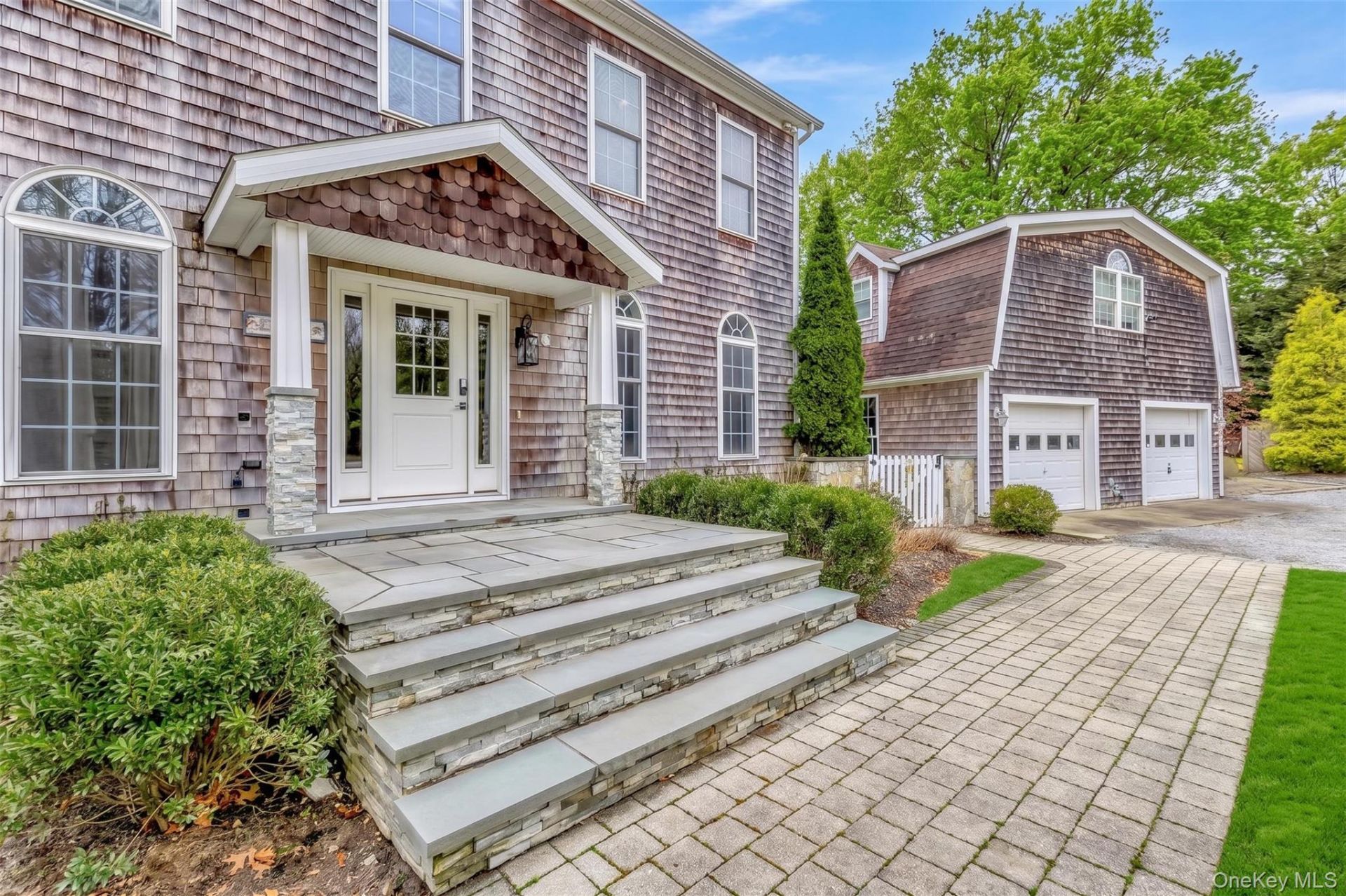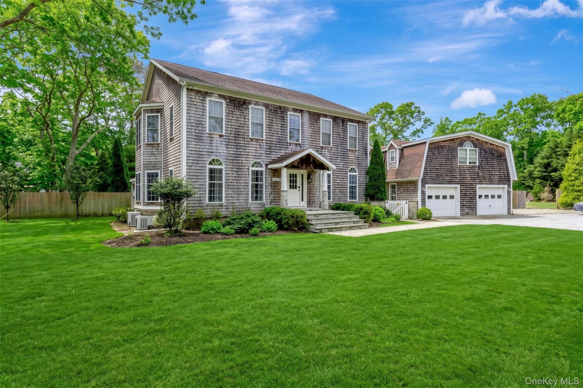 Exquisite Resort-Style Retreat in East Quogue. Recently renovated, turn-key estate set on a sprawling 1.6-acre lot at the end of a private, long driveway, this home offers an unparalleled resort-like setting designed for both grand entertaining and serene relaxation. Spanning 4,100 square feet of meticulously crafted living space, the interior flows seamlessly from one designer room to the next. Chef's kitchen leads to a bright, inviting breakfast room right next to the formal dining room. Additionally, the first floor offers a large living room with fireplace as well as a private office and den. The second floor offers the large primary bedroom plus junior suite as well as two more bedrooms that share a bathroom, making a total of four bedrooms and three full bathrooms on the second floor. The basement is an additional 2,000 square foot of finished space with plenty of versatility. This level includes two bedrooms with egress windows, a full bathroom, a separate walk-out entrance, a home gym area, and a family room. Located above the detached two-car garage is also a full bonus apartment with kitchen and full bathroom. The expansive backyard has a pristine heated saltwater pool that serves as the centerpiece of the outdoor oasis. There's also basketball with ample room remaining to add a tennis court. True Virtual Tour available upon request.
